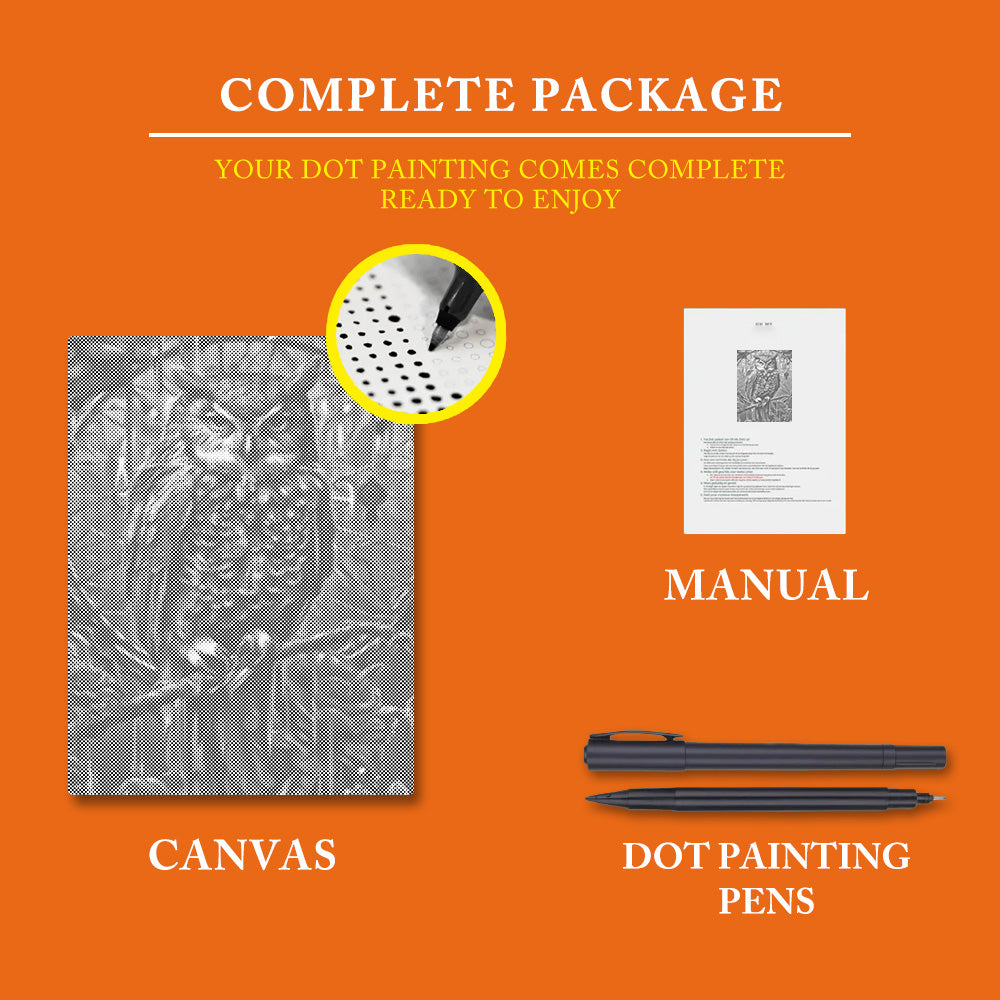 Our custom dot-painting kits include everything you need to start right away: