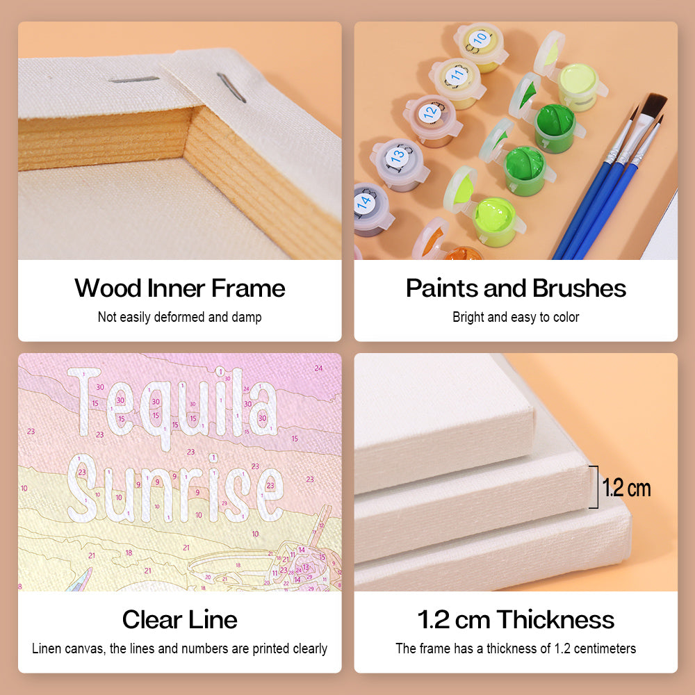 Unveil every essential neatly packed in our Paint by Numbers kit. With each component labeled and ready to use, you can focus solely on your artistic journey. From the vibrant paints to the precision brushes, we've ensured that nothing stands between you and your canvas. Suitable for both beginners and seasoned artists, this kit offers a pure, uninterrupted painting experience.