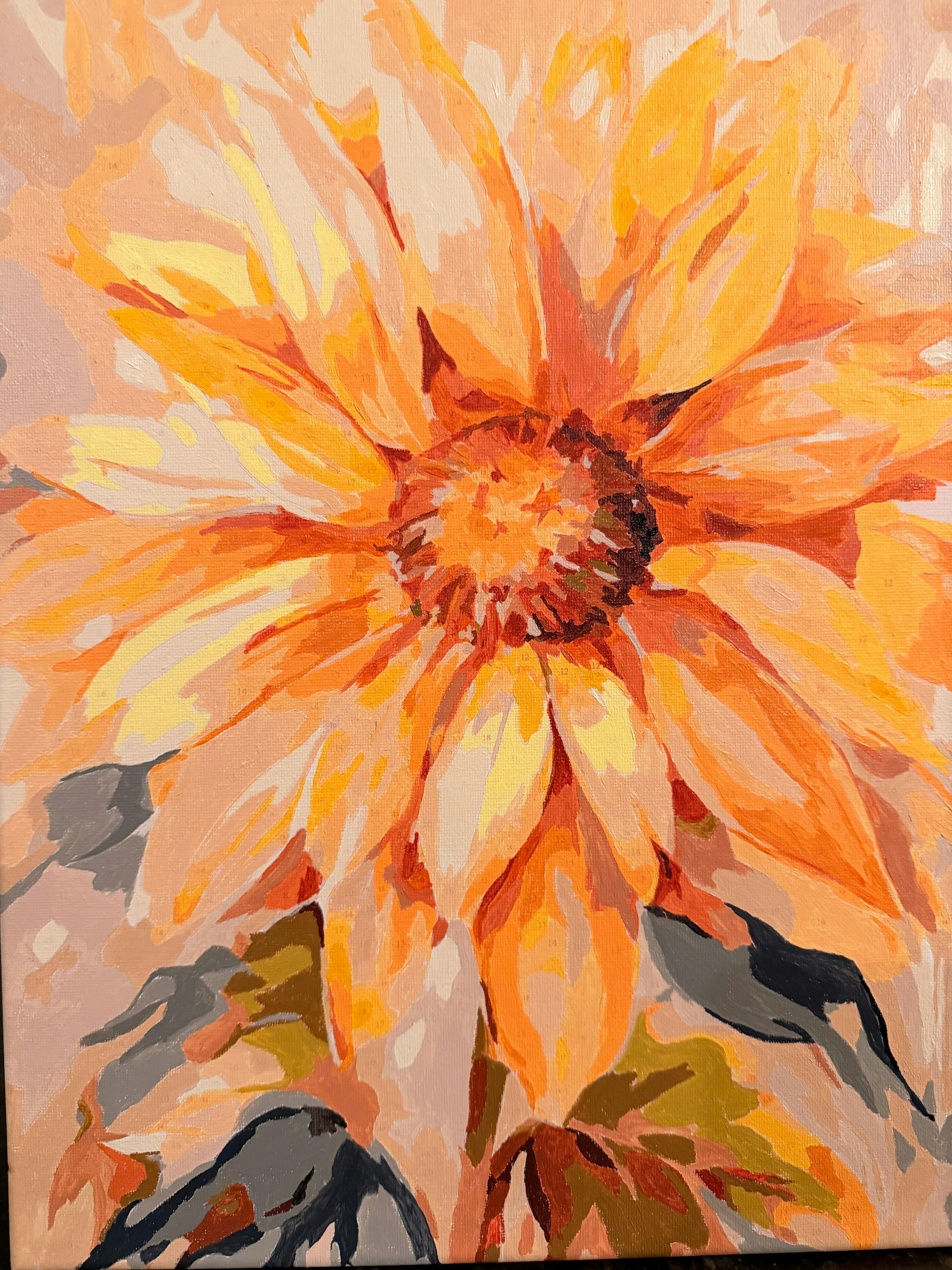 I have completed two cheerful paintings. The first one was rolled canvas and the second one was on canvas and framed. I like the framed one better. It was much easier to work with. They both turned out beautiful and are relaxing and satisfying.