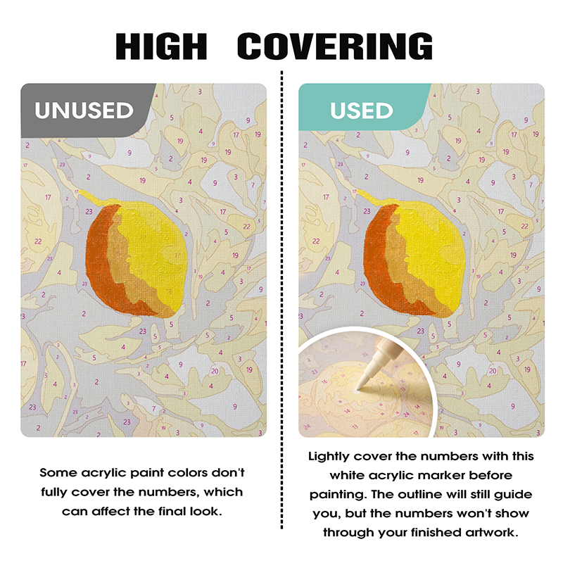 Perfect your paint-by-numbers artwork with this essential white acrylic paint pen set. Designed to cover printed numbers, outlines, and small imperfections, it helps create a clean, polished finish on your canvas.
